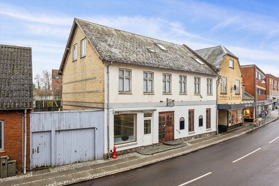 Fin mindre blandet bolig- og erhvervsejendom i Faxe centrum