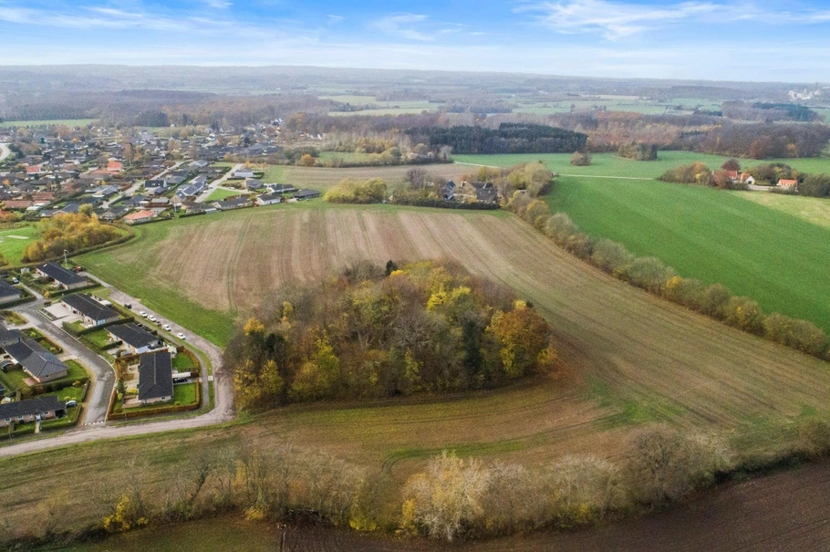I udkanten af Faxe Ladeplads mod nord og med fantastisk udsigt over åbne marker og fredskov - udbydes dette boligareal på 19.485 m², som er udstykket i 17 parcelhusgrunde.