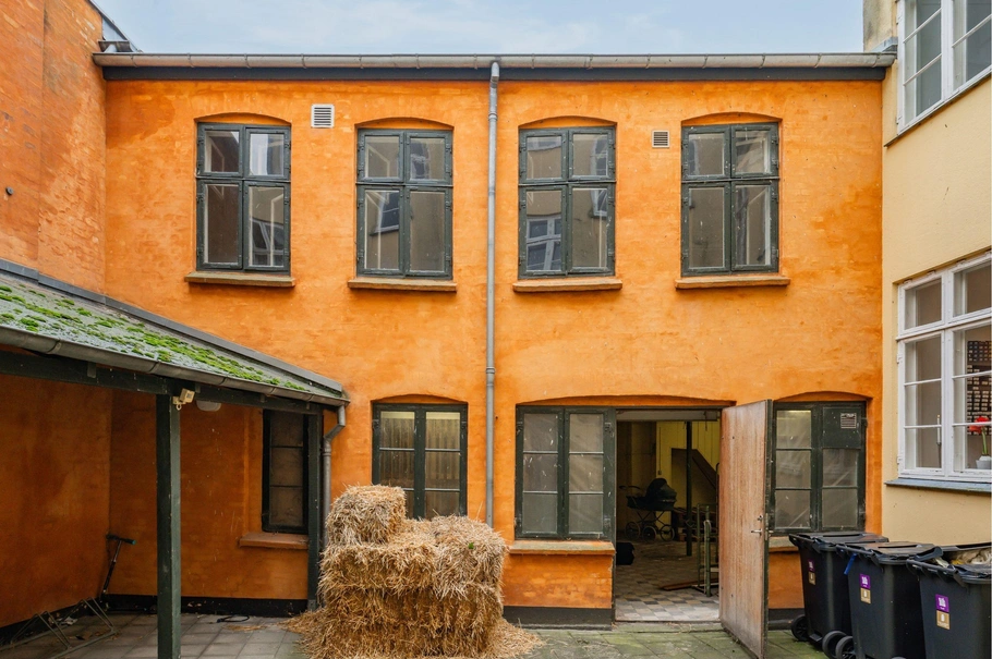 Ejendommen har et bebygget areal på 936 m2, fordelt på 427 m2 i 3 boliger, ca. 260 m2 erhverv med kælder og stort, uudnyttet baghus i 2 plan på ca. 250 m2 med kælder.