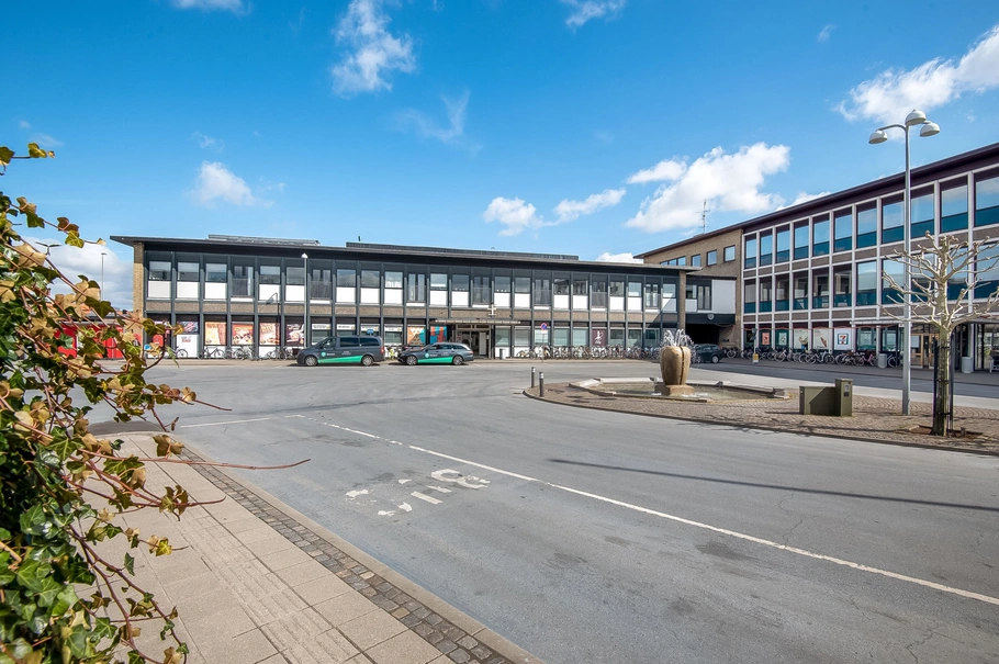 Ejendommen er beliggende direkte på Banegårdspladsen i Nykøbing Falster med kort afstand til centrum og handelsgaderne.