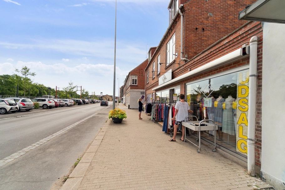 Erhvervsejerlejligheden er beliggende på Jernbanevej med stor synlighed og gode parkeringsforhold ved ejendommen. Erhvervsejerlejligheden indeholder 3 butikker. 2 af butikkerne (en tøjbutik samt massageklinik) er begge beliggende med facade mod Jernbanegade. Det sidste lejemål er beliggende i ejendommens gård. Fælles for alle lejemål er, at de fremstår lyse og i en pæn og velholdt stand. Grunden er primært udlagt til parkeringsareal.
