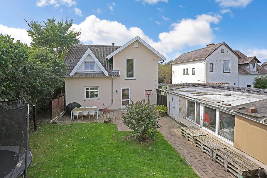 Investeringsejendom med 1 beboelse. Stue etagen indeholder entre med trappe til 1. sal. Større køkken-alrum og stue samt badeværelse. Depot Fint trappeløb til første sal indeholder badeværelse nr. 2 samt 3 gode værelser. Værelser har rigtig pæne trægulve. Fin lukket have og skure til diverse oplag