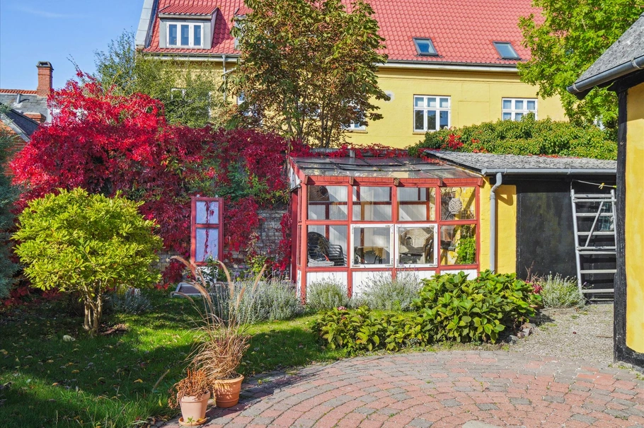 Baghusets lejligheder har alle en lille 1. sal på, ligesom de hver har adgang til egen del af havearealet med udgang fra lejemålet.