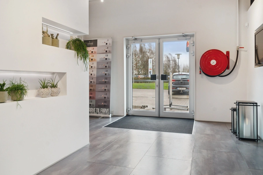 Ganske centralt i erhvervskvarteret finder I denne velindrettede ejendom. Ejendommen har et højt afkast, og der er ligeledes gode parkeringsforhold til besøgende kunder næsten lige foran butiksdøren. Når I ankommer til adressen, bliver I budt velkommen af en lys facade med brede facadevinduer, der er perfekte til at udstille nye varer og produkter. Selve ejendommen har en god indretning med ét stort disponibelt rum samt en mindre afdeling med et mindre disponibelt rum, et gangareal samt et aflukket køkken og toilet.