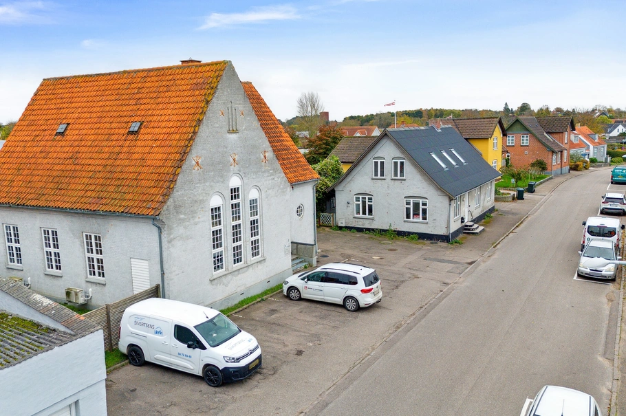 Centralt beliggende og helt speciel ejendom i Asnæs bymidte, er oprindeligt opført som Missionshus, og har en flot arkitektonisk facade med høje vinduer m.v. Beliggende mellem stationen og byens levende center med mange forretninger m.v, og nær byens gymnasium og andre uddannelser.