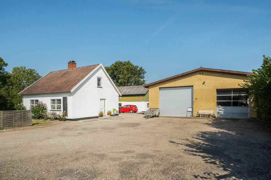 Ejendommen, der er en blandet bolig- og erhvervsejendom, er i dag udlejet. Boligen er et parcelhus på 82 m², der er opført 1908 og som i stueplan er indrettet med entré, køkken, badeværelse med brus, værelse samt rummelig opholdsstue. Første sal er indrettet med 2 gode disponible rum. Herudover forefindes en 275 m² stor erhvervsbygning, der i dag er opdelt i to lejemål. Den ene halvdel anvendes af en smedevirksomhed og den anden til en motorcykelklub.Udhusbygningerne anvendes primært af lejerne, men der er en mindre garage samt disponibelt rum, som nuværende ejer har råderet over. Grunden er i dag udlagt til have samt parkerings- og aflæsningsareal ved ejendommen.