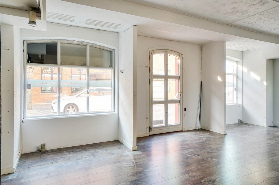 Erhvervslejemålet er på ca. 90 m² og er udlejet til tatovørforretning. Lejemålet har en god størrelse der gør det alsidigt, og er velegnet til mindre butik, frisør og lignende. Alternativt kan det også bruges til mindre liberalt erhverv.