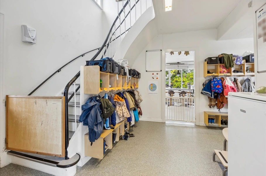 Grundareal på 4.644 m² og er med legeplads og grøn beplantning.