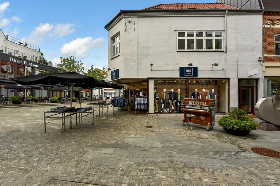 Faktuelt har tøjbutikken DIN Tøjmand drevet forretning fra butikslokalerne i stueplan siden 1974, og således været en solid ankerlejer i generationer.