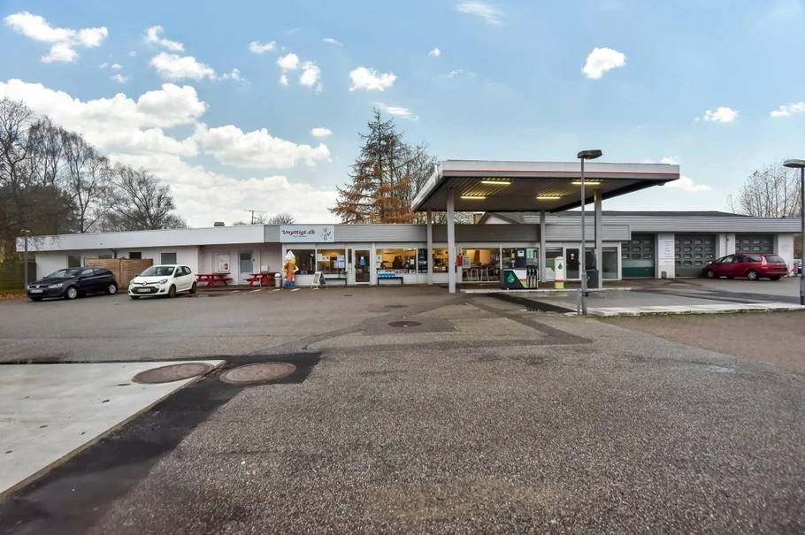 Der er et stort asfaltbelagt areal foran bygningen, som anvendes til tankanlæg, bilsalg, udeservering samt p-plads til boligen. Der er gode adgangsveje til ejendommen.