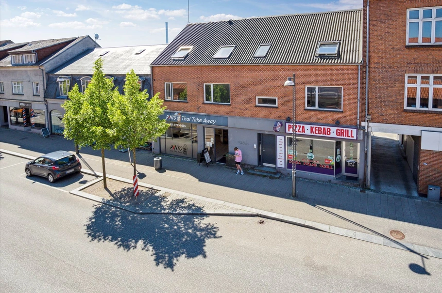 Stueplan er erhvervslejemål inden for detail og restauration mens de øvrige etager er lejligheder/boligenheder.