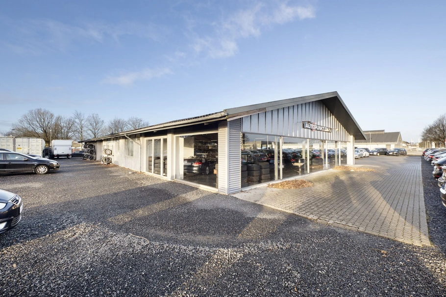 Ejendommen består af et velfungerende værksted med tilhørende udstillingshal og udendørs udstillingsareal, og er beliggende i et attraktivt handelsområde i Hernings nordlige del, koncentreret omkring bilbranchen og komplementære erhverv dertil.