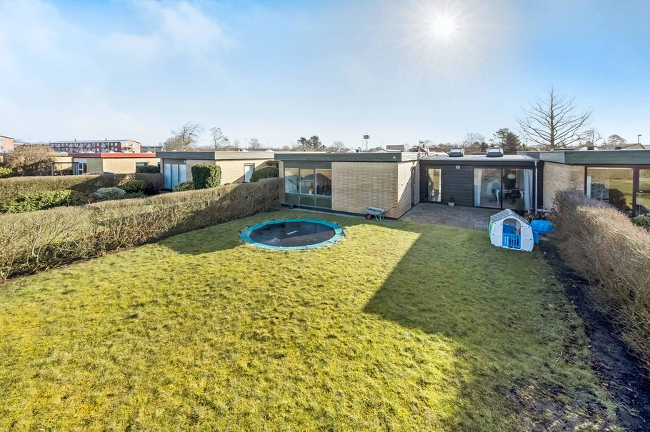 Boligen indeholder blandt andet et soveværelse og to værelser samt en opholdsstue. Herudover er der integreret udestue, som har ovenlys og vinduespartier ud mod haven. Såvel udestuen som opholdsstuen har desuden udgang til havens vestvendte fliseterrasse.