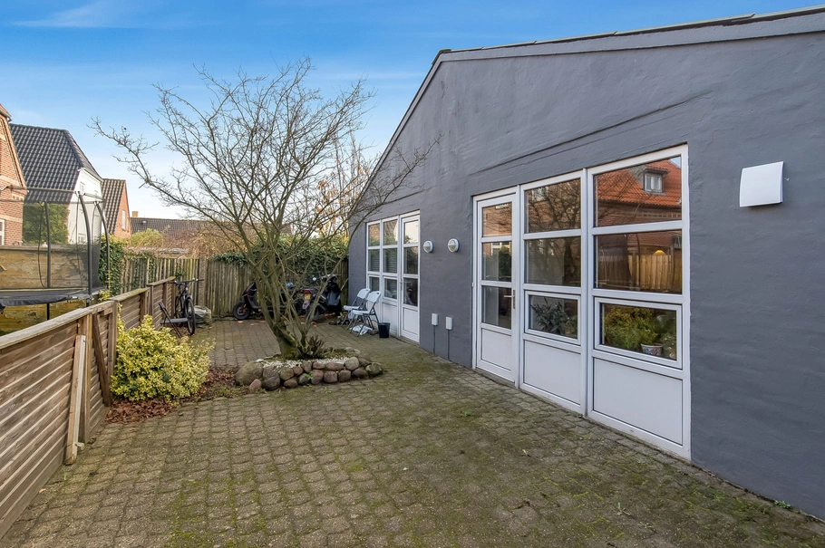 Baghuset er i alt 80 m² og indrettet med 2 lejemål på 40 m² hver især.
