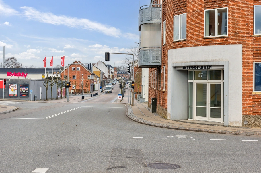 Denne centrale og markante ejendom på Storegade 47 i Brande indeholder 12 boliglejemål, hvoraf to af lejemålene netop er konverteret fra erhverv til boliglejemål. Derudover er der to mindre erhvervslejemål i ejendommens kælder med indgang fra bygningens bagside. Ejendommen er ældrevenlig med mulighed for trappefri adgang til alle lejemålene, da der både er lift ved hovedindgangen og elevator. Fra ejendommen er der også kort afstand til byens mange faciliteter. Bygningen er placeret midt i Brande og ved indgangen til byens hovedstrøg, hvilket giver let adgang til forskellige faciliteter såsom offentlig transport, indkøbsmuligheder, daginstitution, skole og andre servicevirksomheder. Beliggenheden tilbyder stort set alle byens mange faciliteter indenfor gåafstand, og ønsker man at tilgå det nærtliggende motorvejsnet, er der også mulighed for egen parkeringsplads eller garage i gården. Ejendommen har tidligere været brugt som fabriksbygning samt kontor. De tidligere anvendelsesformål som erhverv blev konverteret til primært boliglejemål med ibrugtagningstilladelse i 2003. Da ejendommen er konverteret erhverv efter 1991 er lejefastsættelsen for boliglejemålene fri markedsleje.