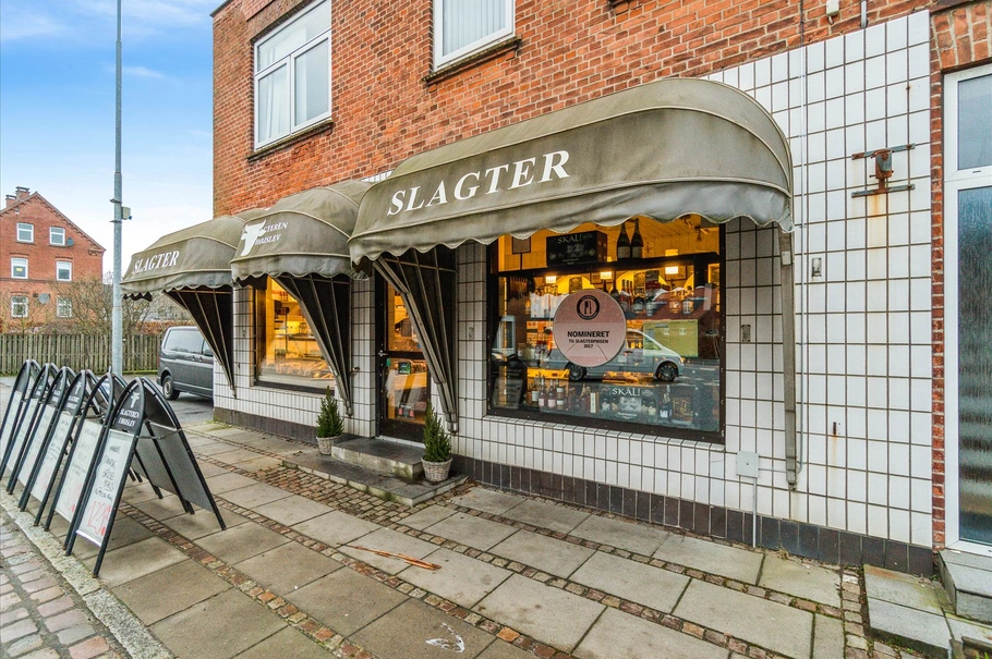 Højslev slagteren har haft til huse i ejendommen siden august 1977, og råder i dag over 238 m² fordelt på butik, depotrum på 1. sal og lager/produktion på 137 m² i gården.