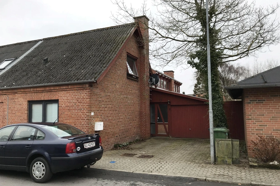 Udenomsarealer, terrasse, altaner, parkering, gårdmiljø, legeplads etc.: Nr. 7 separat indgang med flisebelagt areal, som giver adgang til græsbelagt have. Nr. 9 Stenbefæstet indkørsel med direkte adgang til en garage, adgang til haven via havestue samt græsbelagt have.