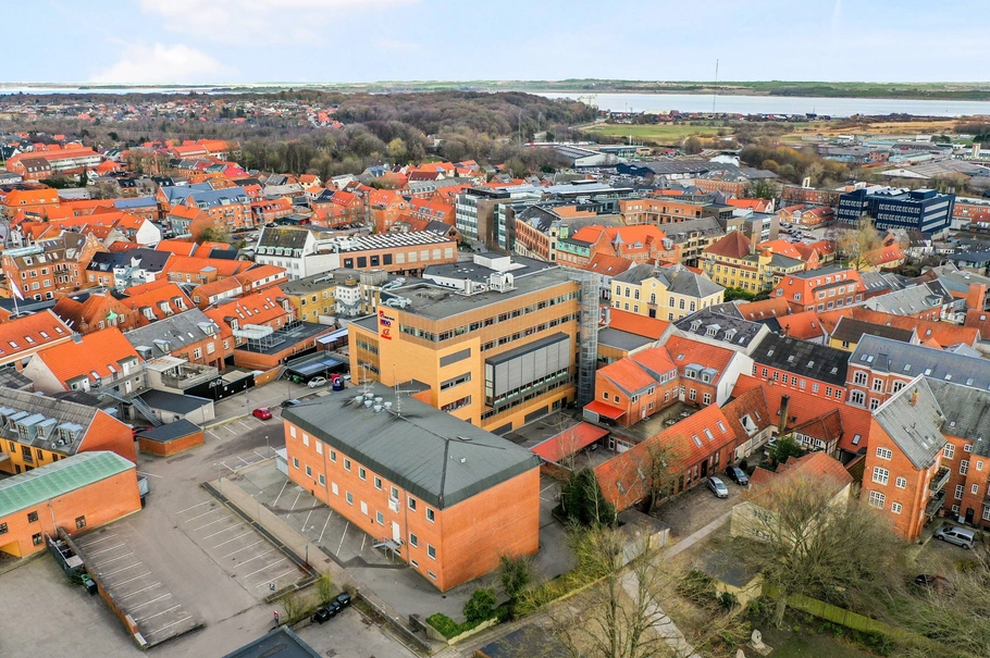 Det er en af de højeste bygninger i Skive hvorfor der er flot udsigt over hele byen samt fjorden.