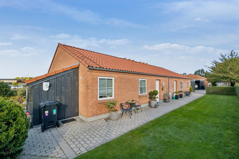 Rækkehusene har terrasser mod syd, husenes haver er rettet mod øst, syd og vest - hvilket skaber gode forudsætninger for hyggelige timer i haven.