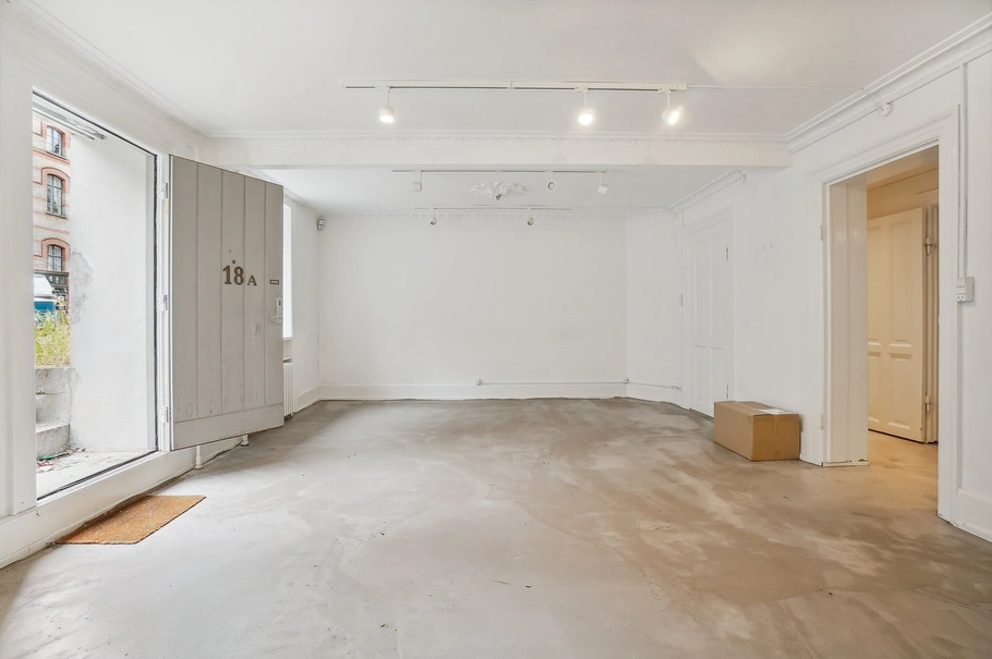 Erhvervslejligheden fremstår nymalet med hvide vægge, og med flotte høje paneler samt lofter med stuk i kontorerne. Hele arealet kan overskues og indrettes til kontor, showroom, klinik eller hvad din virksomhed har brug for til at vokse.