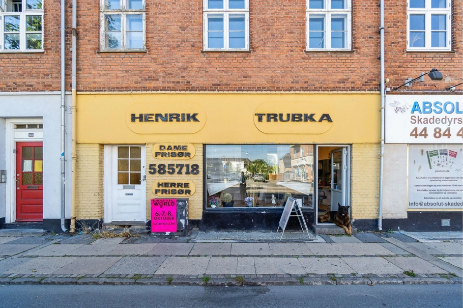 Erhvervslejlighed på den gode del af Amagerbrogade. Har i mange år fungeret som frisørforretning.