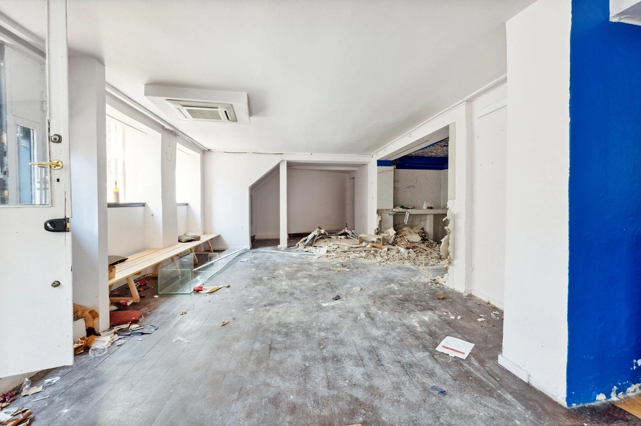 Ejerlejligheden byder på et rummeligt lokale mod gaden, der giver en fantastisk mulighed for at tiltrække kunder. Den har tre indgange direkte fra gaden, hvilket sikrer nem adgang og synlighed. Lokalet er velegnet til en café, restaurant eller bar, og der er allerede installeret nødvendige køkkenfaciliteter samt flere toiletter, hvilket muliggør hurtig opstart af driften.