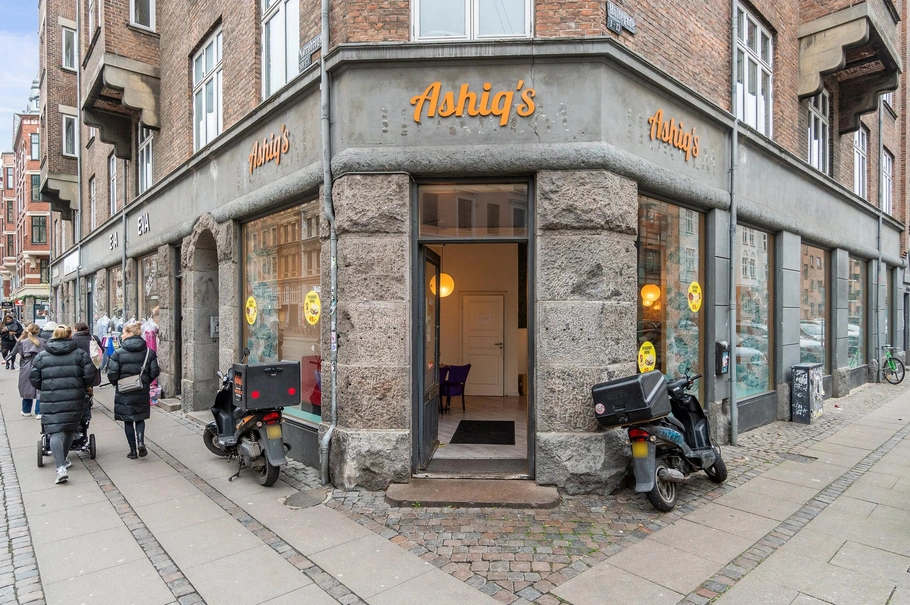 Attraktiv eksponering på hjørnet af Nørrebrogade og Holtegade ligger denne erhvervsandel. Med sin suveræne beliggenhed og pæne facade får den nye ejer alle forudsætninger for at etablere en veldrevet restaurant/cafe eller lignende. Med sine 296 m² er der god plads til de siddende gæster og ligeledes god arbejdsplads i køkkenet. De store facadevinduer, der både vender mod Nørrebrogade og Holtegade giver masser af lys i lokalerne, som på nuværende tidspunkt har et blandet look af retro og det moderne.