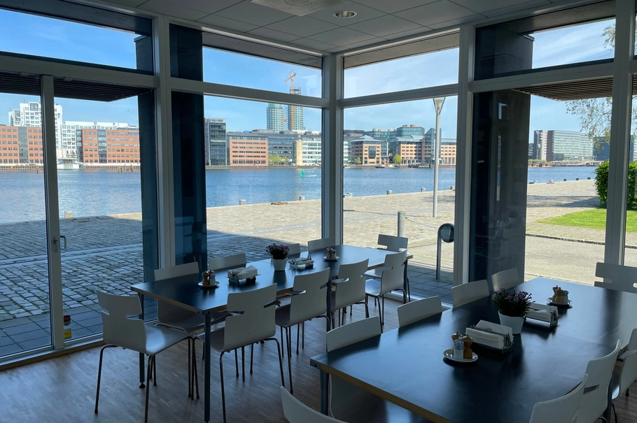 ejendommens andre etager. I stuen findes der kantine ud mod vandet,