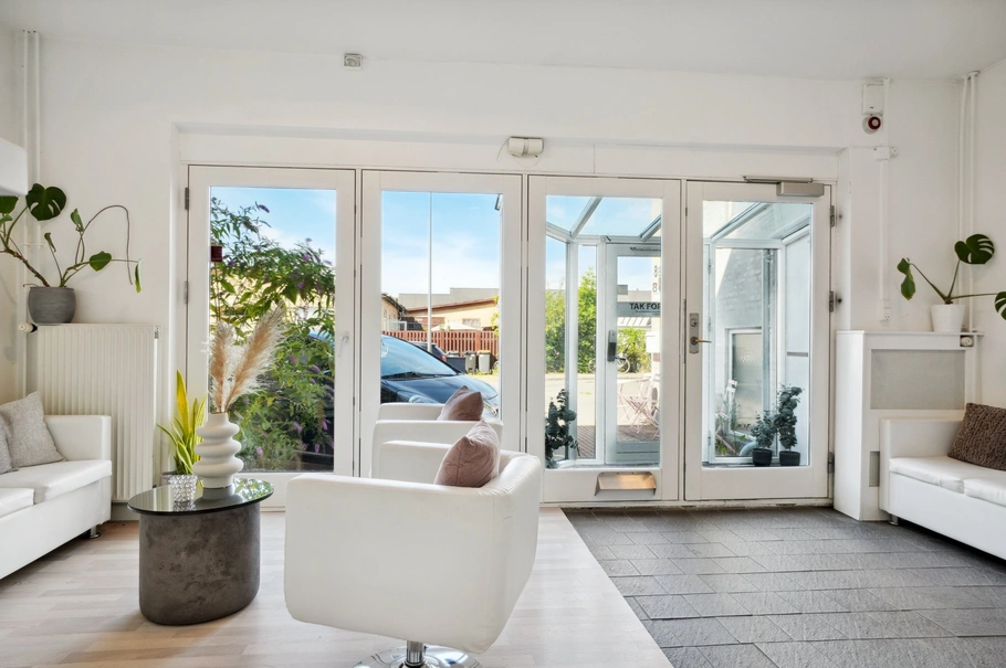 - Ejendommen indeholder åbne og lyse rum med store vinduer.