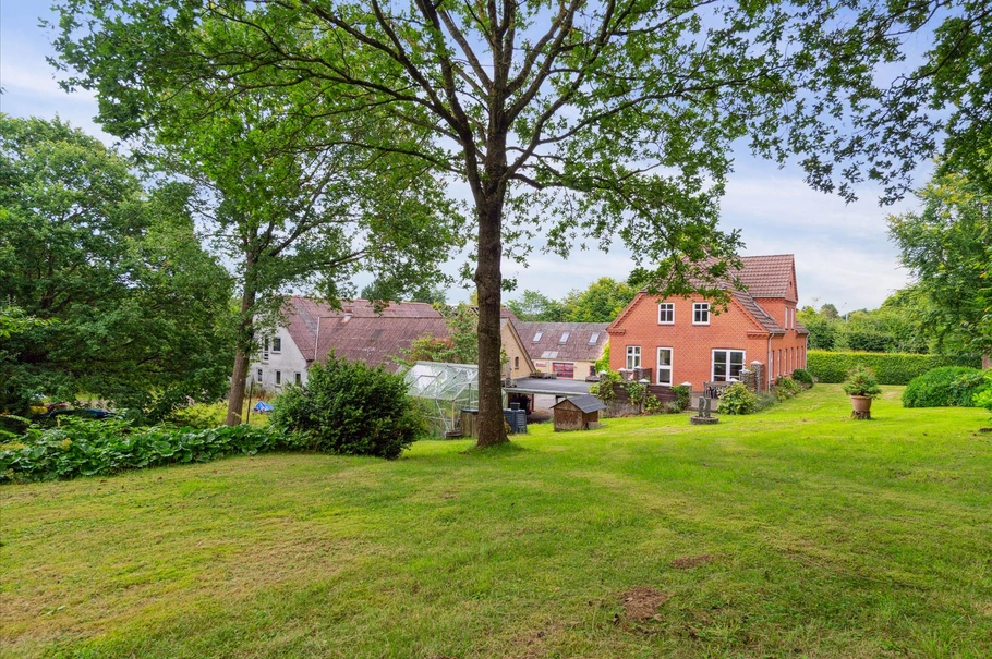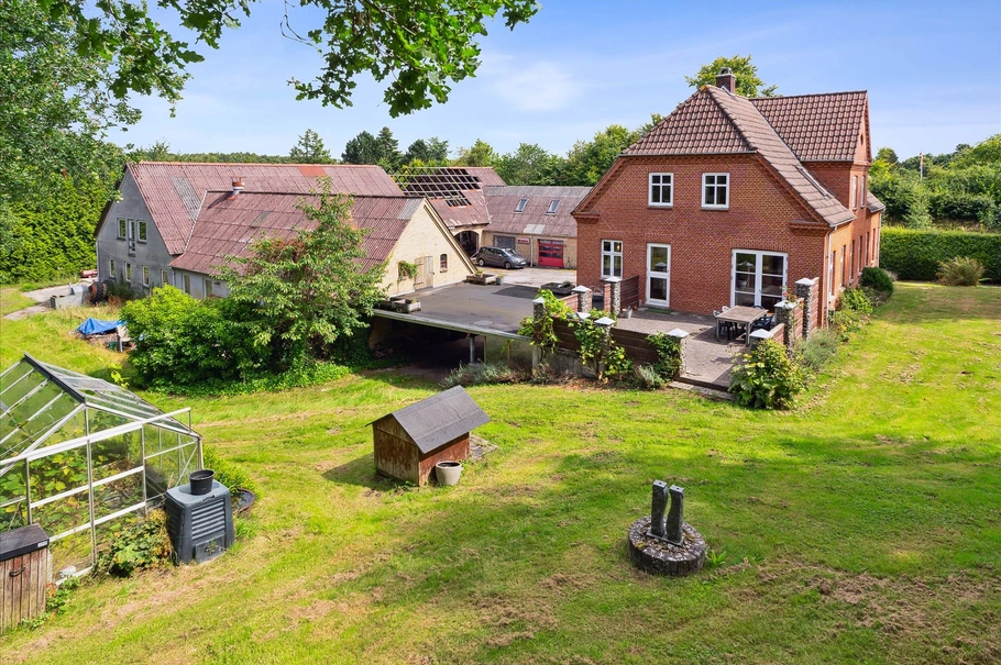 Erhvervsdelen udgør 628 m², hvoraf 100 m² er på første sal. Der er tale om en tidligere landbrugsejendom, hvor længerne nu udgør lager/værksted og kontor. Bygningerne er opført i teglsten med bølgeeternittag med høj rejsning.