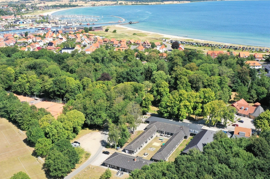 Ejendommen ligger på en stor grund, i skoven, og med store grønne områder samt tennis- og boldbaner, som nærmeste nabo. Herudover er der kun få minutters gang til Kertemindes Sydstrand.
