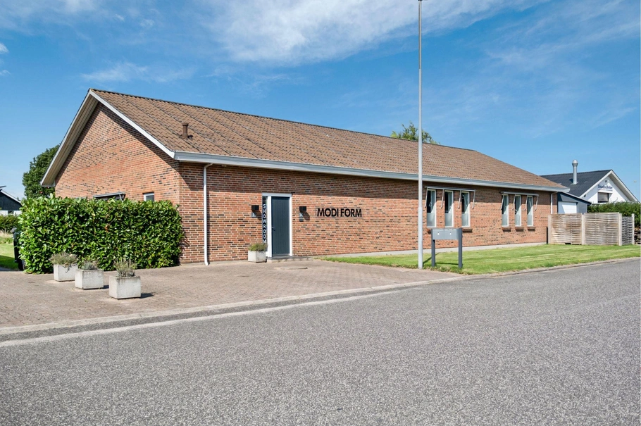 Den erhvervsmæssige del af ejendommen er på 296 m² og blev opført i 1986. Den er indrettet med faciliteter, der kan tilpasses forskellige erhvervsmæssige aktiviteter. Lokalerne er lyse og rummelige, og består af to velindrettede kontorer, og tre store sammenhængende lokaler med en loftshøjde på 3 meter. Disse kan med fordel bruges til showroom, lager eller andre aktiviteter, der kræver god plads og højde. Der er gode parkeringsmuligheder på grunden.