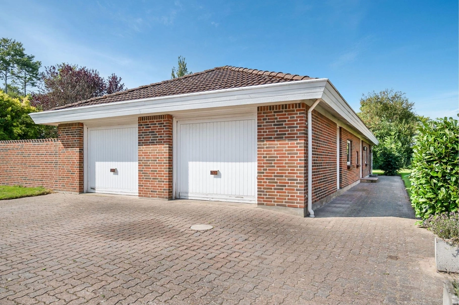 I forlængelse af ejendommen findes en garage, der er udstyret med rulleporte. Garagen har direkte adgang til erhvervsdelen samt udgang til terræn, hvilket gør det nemt at håndtere varer og udstyr, og kan evt. benyttes som natboks.