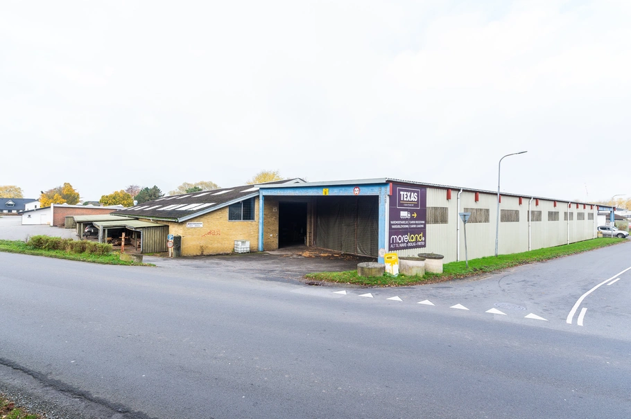 Ejendommen kan eventuelt udvides med naboejendommen med ca. 1.500 m² forretning/lager/ produktion - alternativt kan ejendommen også lejes.