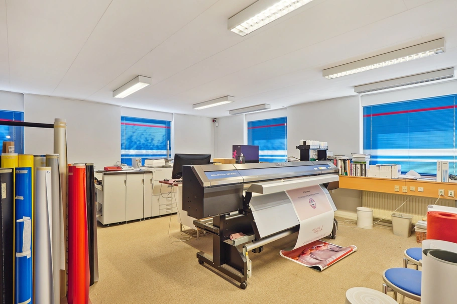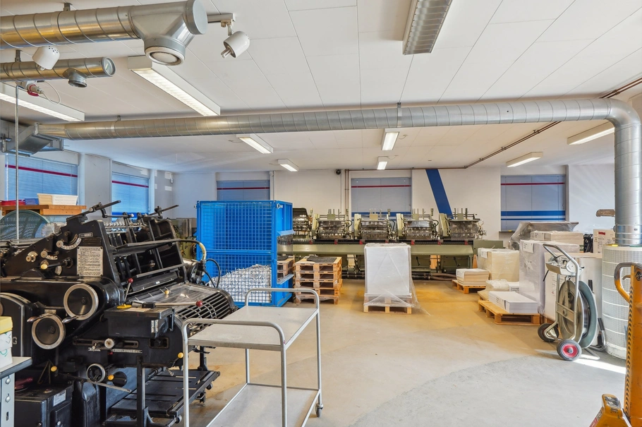 Ejendommen har gennem årene været benyttet til produktion af grafisk materiale og rummer derfor faciliteter, der er ideelle til både let industri, lager og kontorbrug.