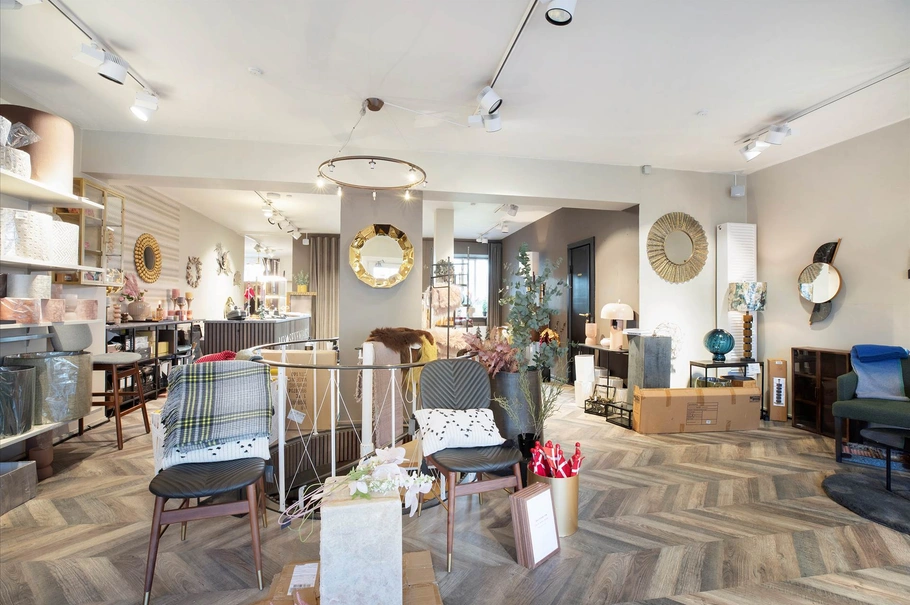 Størstedelen af erhvervets kvadratmeter udfolder sig i stueplan, og hertil kommer en række bonuskvadratmeter i kælderetagen, som er oplagt til lager og opbevaring. Lokalerne er gennemgående lyse og indbydende, og så er der kælet for detaljerne ved blandt andet sildebensparketgulvet og accentvæggene. I butikken er der rig mulighed for at fremvise jeres produkter/varer i montrer, på stativer og ellers på reoler langs væggene. Der er plads til en større salgsdisk, og ellers er der taget hånd om praktikken i form af køkkenet, badeværelset og gæstetoilettet. Det er selvsagt lige til at rykke ind i og tage i brug fra dag ét.