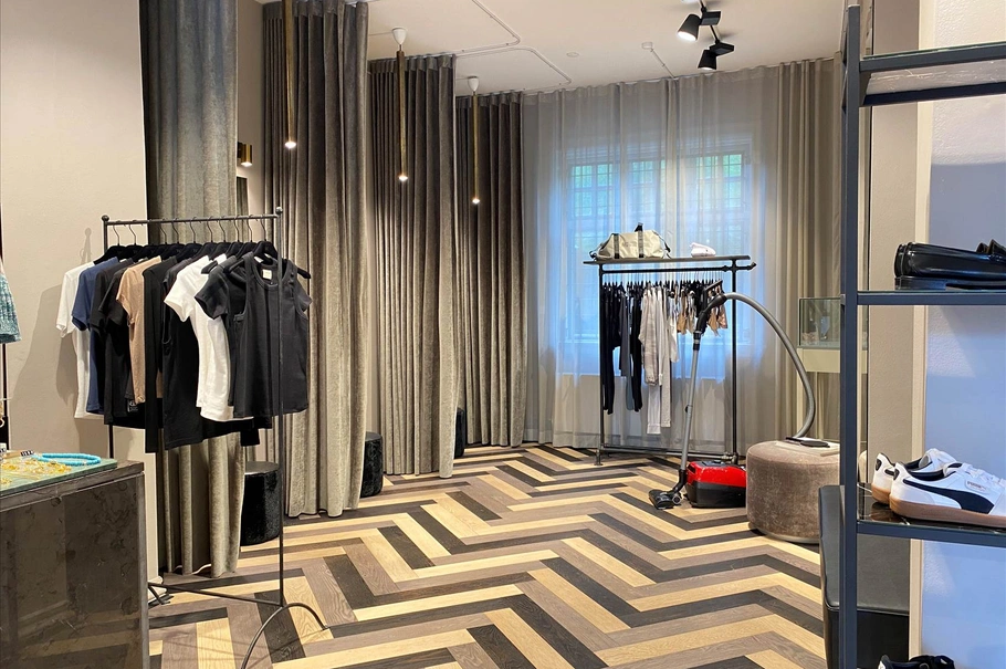 Butikken er indrettet med stort salgsareal med 2 store facade-/udstillingsvinduer.