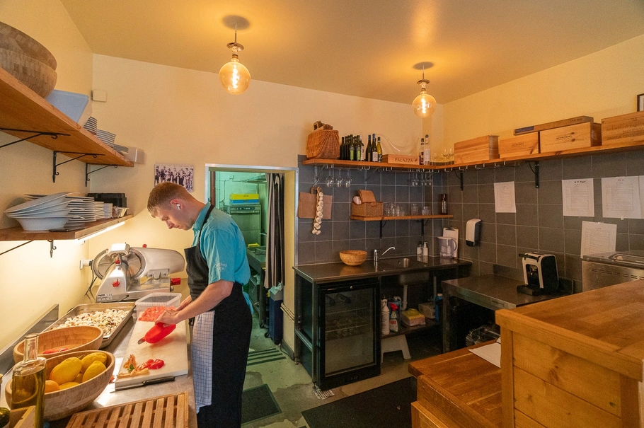 • I forlokalet er der ved siden af bardisken indrettet område til at preppe maden. Dette giver en unik mulighed for at inspirere og friste kunderne med de friske råvarer