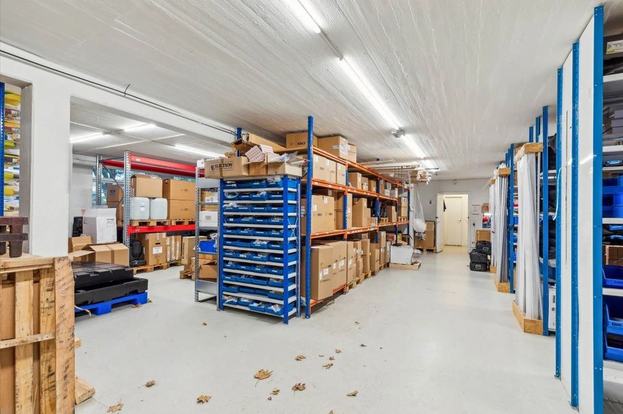 Selve ejendommen er delt op i to; forrest har vi den gamle boligafdeling, hvor der tidligere har været både værelser, badeværelse og køkken, hvilket altså let kan genskabes. Dertil kommer selvfølgelig hovedattraktionen; nemlig den store erhvervsbygning, der fordeler sine mange gode kvadratmeter mellem to veldisponerede plan. Der er mange anvendelsesmuligheder, og alt fra et laboratorium til en techvirksomhed og over til de finere håndværk vil kunne trives med disse nærmest luksuriøse faciliteter. Helt lavpraktisk er der tale om to kæmpe lokaler såvel som flere mindre lokaler på begge plan. Der er altså plads til både fælleskontorer, møderum, lager og deslige, og derudover er der både køkken og toiletfaciliteter på begge etager. Ja, man kan faktisk ikke sætte en finger på rammerne.