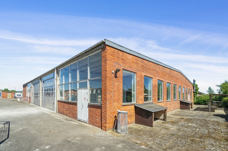 Grundarealet ndrager er 3.541 m² omkranset af græsplæne og parkeringsareal ved kontorbygningen samt praktisk befæstet tilkørsel til ejendommens bagside, hvor der i gavlen af ejendommen er placeret to store porte.