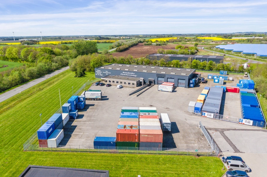 Den 15.691 m2 store grund er bebygget med 1.877 m2 , svarende til ca. 12% af det samlede grundareal. Ca. 40% af ejendommen er befæstet med asfalt og fuldt indhegnet. Der er således fremragende udenomsarealer, der er velegnede til såvel tung rangertrafik, parkering samt opbevaring af containere.