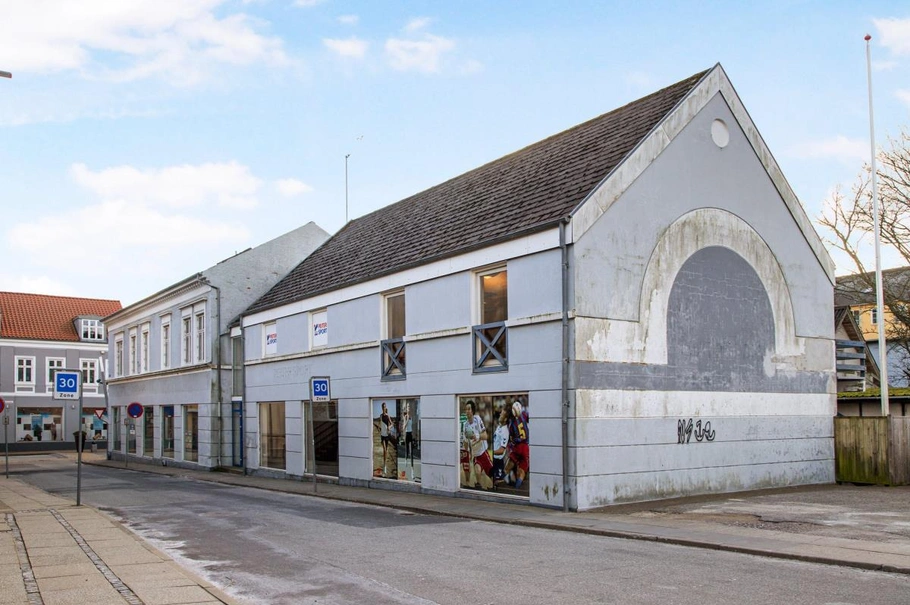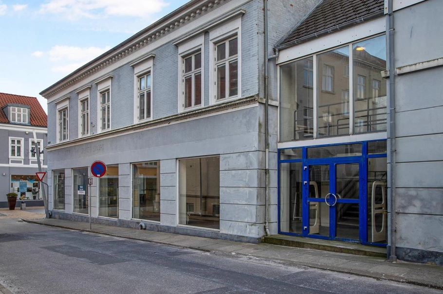 En hjørneejendom med særdeles stor synlighed og facade, hvor 4 facadevinduer vender ud mod Danmarksgade og de resterende 10 vinduer vender ud mod Teglgårdsvej. Til ejendommen er der gode parkeringsforhold.