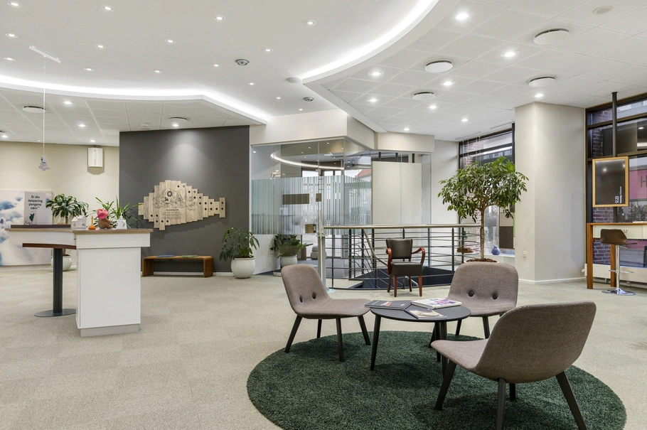 Ejendommen består af to etager samt en kælder. Stueetagen rummer et fælleskontor med plads til flere arbejdsstationer samt flere mindre mødelokaler. På 1. sal finder man et stort, lyst konferencerum, yderligere mødelokaler samt personalefaciliteter.