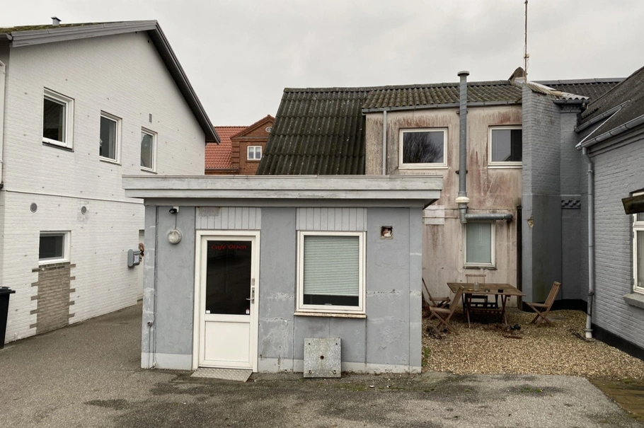 Ejendommen ligger midt i gågaden i Hurup Thy.