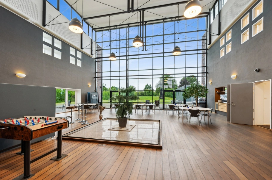 Ejendommen blev opført i 2002, men den fremtræder som nyopført - måske fordi bygningen allerede var foran sin tid dengang? De sociale relationer er indtænkt i arkitekturen, hvor et stort og lyst atrium har plads til dagligdagens sociale formål eller større fællesarrangementer. Der er både mødelokaler, enkeltpersoners kontorer og konferencerum, to kantiner og gode toiletforhold. Derudover rummer ejendommen også et større lagerareal i både stueplan og i kælderen, og har du brug for et showroom, er der også plads til det.