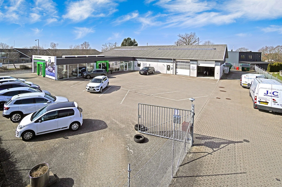 Autohus med udstillingsområde, værksteder og 8 lifte.