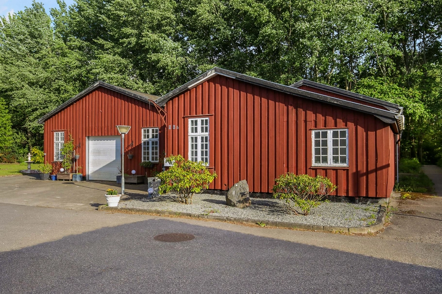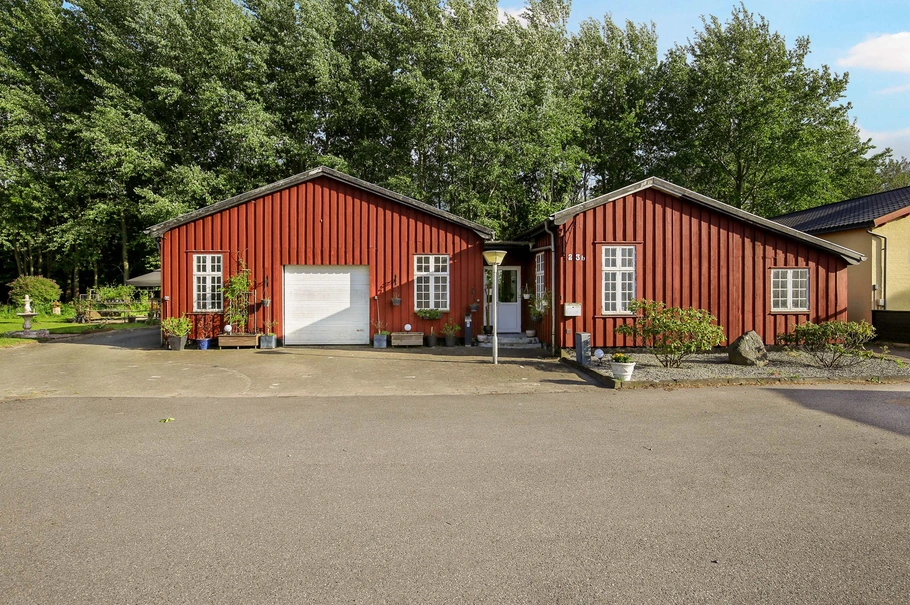 En rød træfacade med hvidsprossede vinduer, masser af parkeringsmuligheder og en god, stor grund med varieret beplantning. Førstehåndsindtrykket fejler ikke noget, og i baghaven løber åen, mens Frederiksværk Eng er en af de nærmeste naboer. Der er altså masser af mulighed for at nyde de naturskønne omgivelser i enten haven eller de omkringliggende arealer, mens selve ejendommen rummer plads til både erhverv og gode personale område.