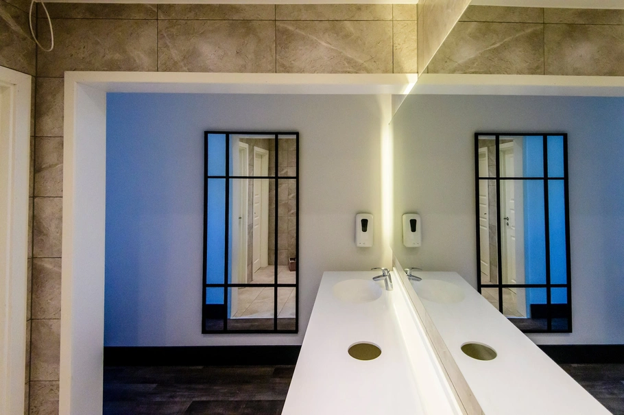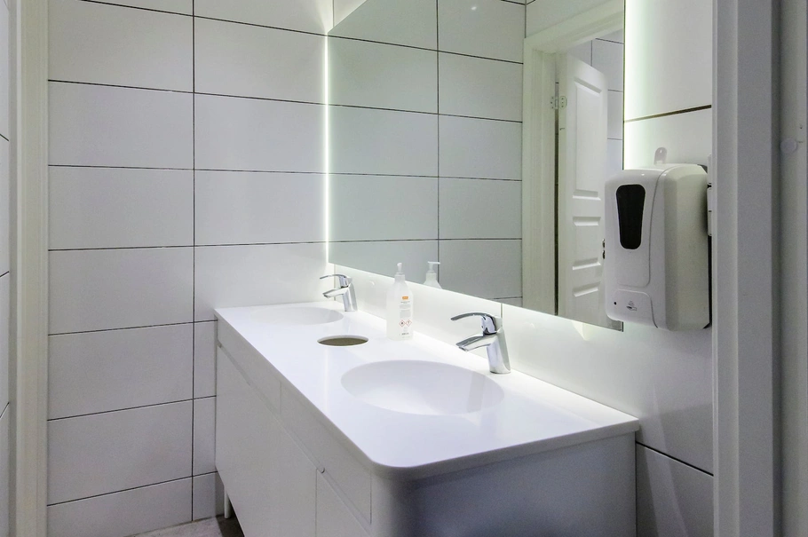Flotte og moderne toiletfaciliteter, mindre køkken og en kælder med lagermulighed, foruden personaletoilet.