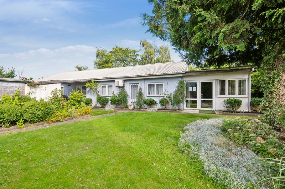Ejendommen er opført i 1962 og fremstår med et udtryk karakteristisk for perioden. Den omfatter et samlet areal på 1.838 m², heraf er 498 m² bebygget og fordeler sig på to bygninger. Dette inkluderer 148 m² bolig og 350 m² til erhverv, hvilket gør ejendommen utrolig anvendelig for en bred vifte af formål.