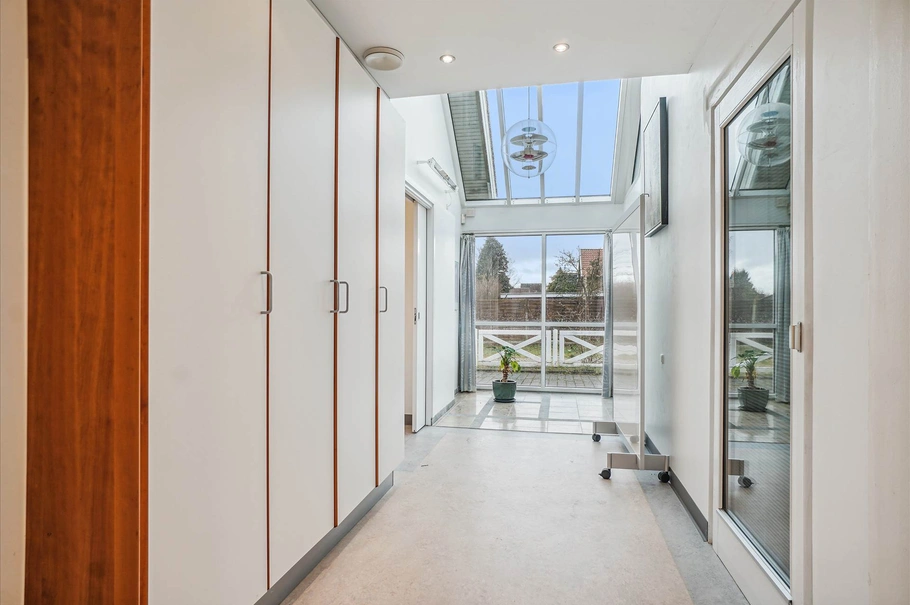 Fra det oprindelige indgangsparti er der adgang til boligen på 1. sal. Boligen består af køkken, badeværelse samt to gode værelser. Ejendommen er apteret med sug, trykluft og ilt og er dermed helt oplagt at fortsætte som hvad det hidtil har været – en lægeklinik.